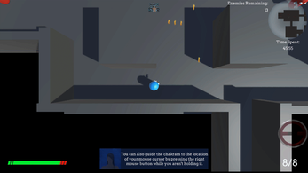 Bounce Hunter is a single player top down shooter in which the player is tasked with killing all enemies in the level. They are equipped with a pistol and a chakram, and can directly control their chakram’s flight path.